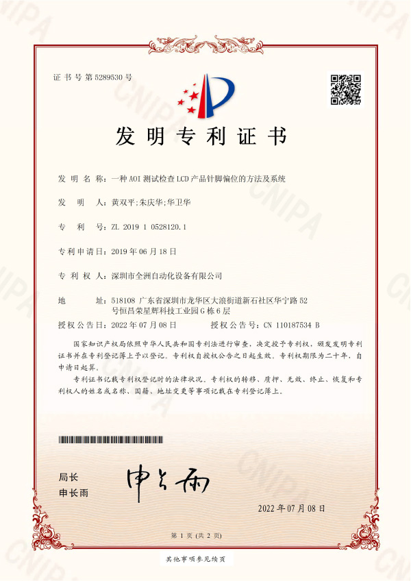 深圳市全洲自動化設(shè)備有限公司是一家集研發(fā)、生產(chǎn)、銷售為一體的國家高新技術(shù)企業(yè),擁有一支強(qiáng)大、資深的技術(shù)研發(fā)團(tuán)隊(duì),及完善的生產(chǎn)、銷售服務(wù)隊(duì)伍。公司致力于LCD和半導(dǎo)體行業(yè)的智能制造,先后推出了全自動貼片、裝腳、點(diǎn)膠、固化、切腳流水線,全自動LCD AOI測試機(jī)、COG/COB自動AOI測試機(jī)、TFT多畫面測試機(jī)。并破解行業(yè)難題,研發(fā)了分辨率達(dá)微米級的LCD整模圖像檢測機(jī)等高端設(shè)備,可應(yīng)用于LCD/TFT/集成電路/晶圓檢測等領(lǐng)域,有效提升生產(chǎn)和測試效率,保障產(chǎn)品品質(zhì)。受到了新老客戶的歡迎和好評,與業(yè)內(nèi)眾多知名企業(yè)建立了長期合作伙伴關(guān)系。公司秉承“誠信經(jīng)營、科技創(chuàng)新”的經(jīng)營理念和“團(tuán)結(jié)、合作、進(jìn)取”的企業(yè)精神,竭誠為客戶提供優(yōu)質(zhì)的產(chǎn)品,完善的技術(shù)服務(wù)!讓我們攜手,互利雙贏,共同發(fā)展,一起邁向企業(yè)美好的新未來、新坐標(biāo)!